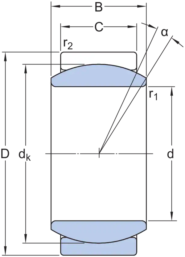 У этих радиальных сферических подшипников скольжения комбинация контактных поверхностей скольжения сталь/сталь. Они требуют технического обслуживания и могут смазываться только с боковой стороны.
