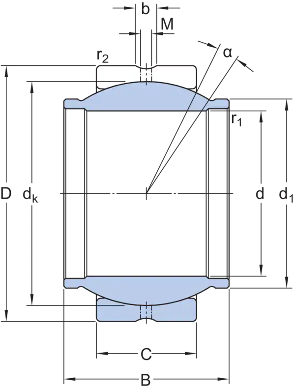 У этих радиальных сферических подшипников скольжения комбинация контактных поверхностей скольжения сталь/сталь и более широкое внутреннее кольцо, ширина которого равна диаметру его отверстия. Они требуют технического обслуживания и могут повторно смазываться через наружное кольцо.