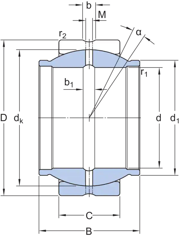 У этих радиальных сферических подшипников скольжения комбинация контактных поверхностей скольжения сталь/сталь и более широкое внутреннее кольцо, ширина которого равна диаметру его отверстия. Они требуют технического обслуживания и могут повторно смазываться через смазочные отверстия и кольцевую канавку на обоих кольцах.