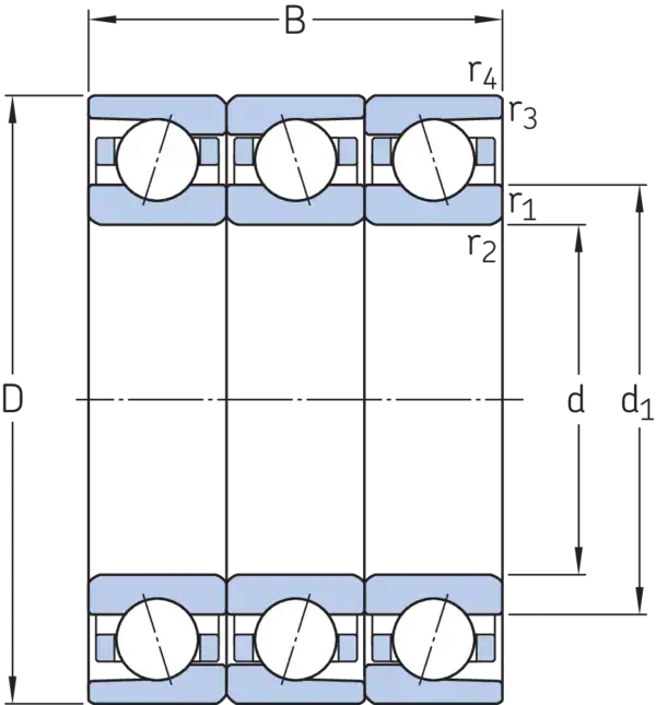 Эти комплекты трёх спаренных прецизионных радиально-упорных шарикоподшипников выпускаются в широком диапазоне конструкций, вариантов и узлов, что позволяет использовать их практически в любом станочном оборудовании, а также в других областях, где требуются прецизионные подшипники. Предварительно настроенные схемы включают: «тандем», «О-образная схема и тандем», «X-образная схема и тандем». Комплекты с О-образной и тандемной схемой, либо X-образной и тандемной схемой выпускаются для разных классов преднатяга, а правильный монтаж создаёт преднатяг в заданном диапазоне без применения проставочных колец или аналогичных приспособлений. Для получения требуемого преднатяга комплекты из трёх подшипников, спаренных по схеме «тандем», необходимо устанавливать в сопряжении с одинарным подшипником или другим комплектом подшипников со схемой «тандем». Отверстия и наружные диаметры подшипников согласованы в пределах максимум одной трети допустимого допуска диаметра для обеспечения более хорошего распределения нагрузки, чем у одиночных подшипников для универсального монтажа.