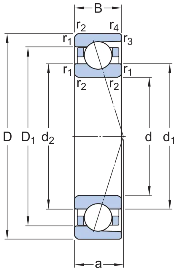 Эти прецизионные однорядные радиально-упорные шарикоподшипники повышенной грузоподъёмности могут воспринимать действующие одновременно радиальную и осевую нагрузки, когда осевая нагрузка действует только в одном направлении. Они способны выдерживать тяжёлые нагрузки на относительно высоких частотах вращения при низких и средних рабочих температурах. Поскольку они подходят для универсального монтажа, то могут совместно устанавливаться в узле для эффективного распределения нагрузки, с преднатягом в заданном диапазоне, без применения проставочных колец или аналогичных приспособлений.