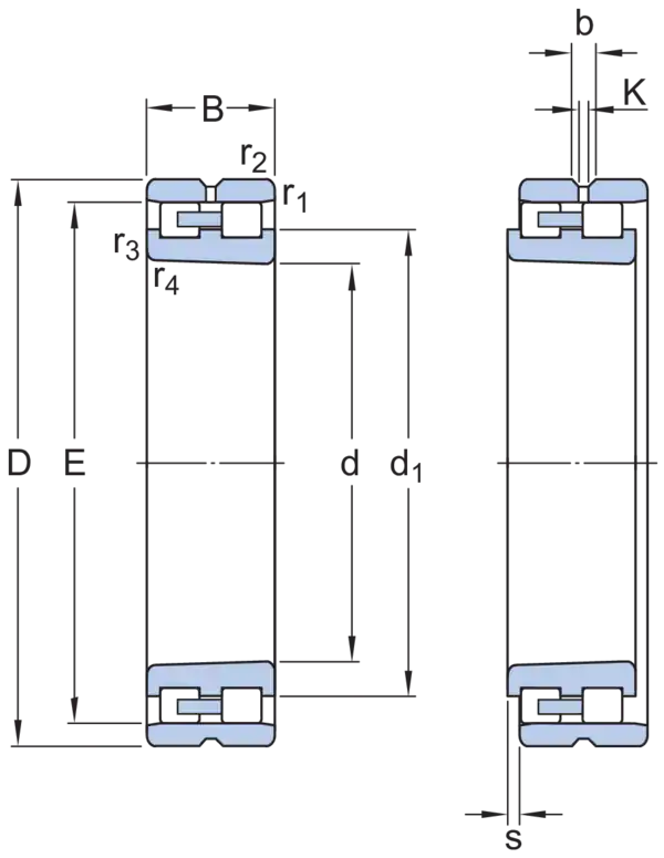 Прецизионные двухрядные цилиндрические роликоподшипники серии NN обладают оптимальным балансом грузоподъёмности, жёсткости и частоты вращения. С тремя фланцами на внутреннем кольце и без фланцев на наружном кольце, подшипники выдерживают осевое смещение в обоих направлениях. Разъёмная конструкция упрощает монтаж и демонтаж, особенно, если для конструкции требуется посадка с натягом обоих колец.