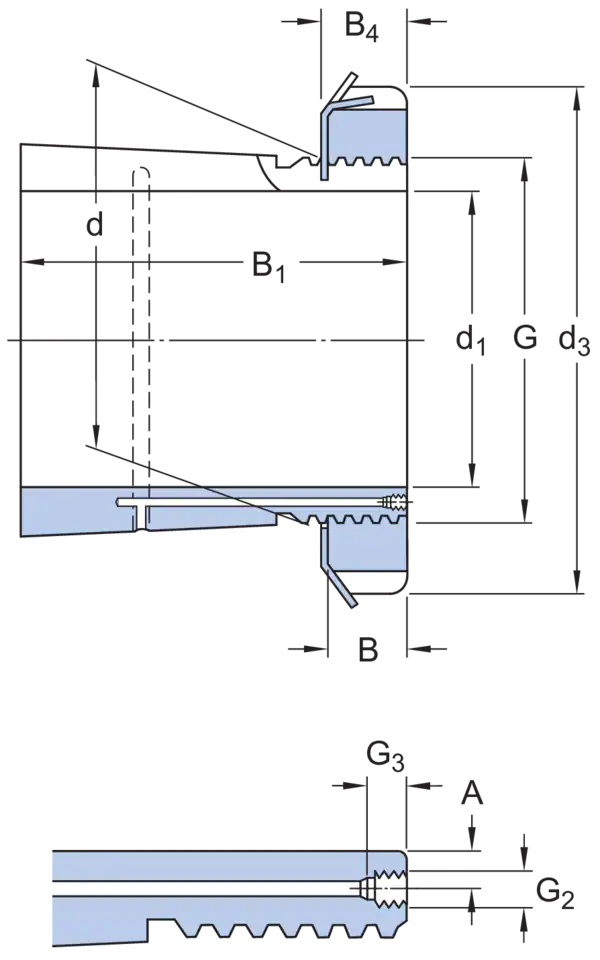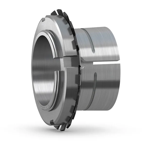 Закрепительные втулки – самые распространенные устройства для фиксации подшипников с коническим отверстием на цилиндрических посадочных поверхностях гладких или ступенчатых валов. Эти втулки позволяют выполнять монтаж и демонтаж подшипников с использованием метода гидрораспора, они являются разрезными и поставляются в комплекте со стопорной гайкой и фиксирующим устройством. Они просты в установке и не требуют дополнительных приспособлений для фиксации на валу.