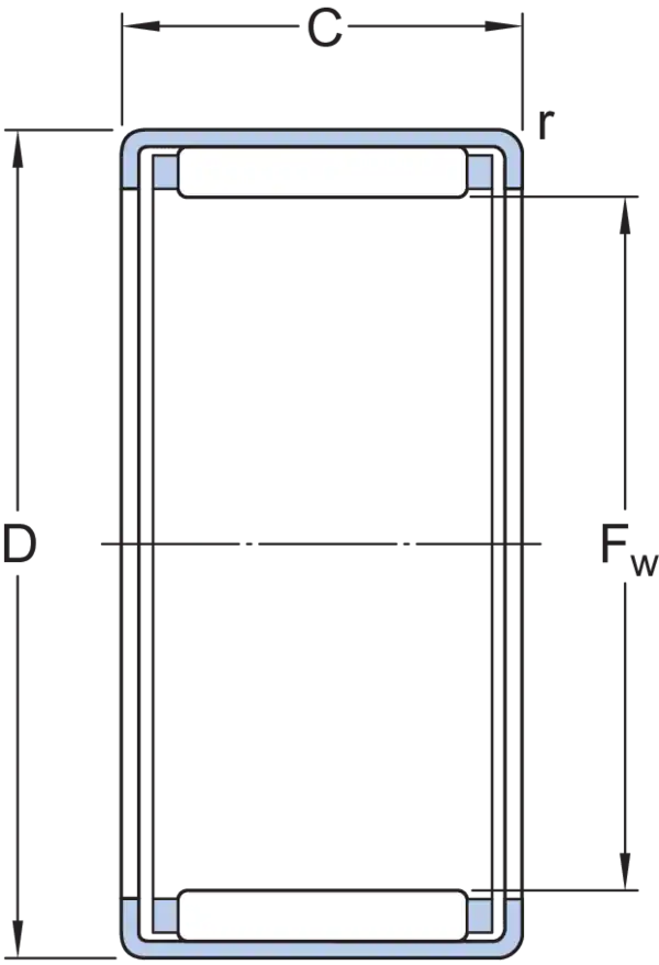 Игольчатый роликоподшипник со штампованным наружным кольцом и открытыми торцами