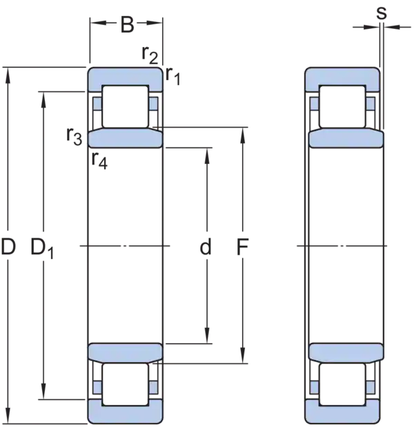Однорядные цилиндрические роликоподшипники предназначены для тяжёлых радиальных нагрузок в комбинации с большими частотами вращения. С двумя встроенными фланцами на наружном кольце и без фланцев на внутреннем кольце, подшипники типа NU выдерживают осевое смещение в обоих направлениях. Важной особенностью является разъёмная конструкция, которая упрощает монтаж и позволяет заменять компоненты подшипника.