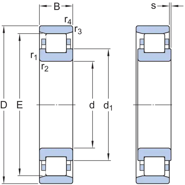 Однорядные цилиндрические роликоподшипники предназначены для тяжёлых радиальных нагрузок в комбинации с большими частотами вращения. С двумя встроенными фланцами на внутреннем кольце и без фланцев на наружном кольце, подшипники типа N выдерживают осевое смещение в обоих направлениях. Важной особенностью является разъёмная конструкция, которая упрощает монтаж и позволяет заменять компоненты подшипника.