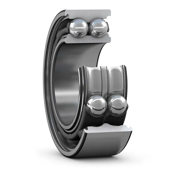 Двухрядные радиально-упорные шарикоподшипники по своей конструкции и применению соответствуют паре однорядных радиально-упорных шарикоподшипников, установленных по О-образной схеме, но меньше по ширине. Могут работать при высоких частотах вращения и больше, чем радиальные шарикоподшипники, подходят для поддержки больших осевых усилий в обоих направлениях.