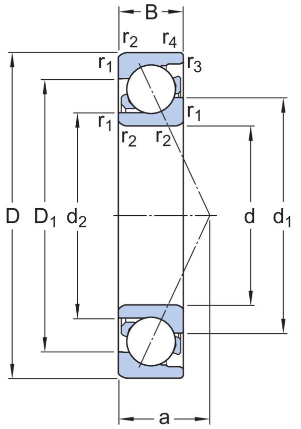Эти однорядные радиально-упорные шарикоподшипники с углом контакта 25° могут воспринимать действующие одновременно радиальную и осевую нагрузки, когда осевая нагрузка действует только в одном направлении. Они изготавливаются с нормальным осевым внутренним зазором и подходят для универсального монтажа, когда два подшипника могут устанавливаться по Х-образной или О-образной схеме. Они оснащаются центрируемым по шарикам латунным сепаратором. Их допустимая частота вращения может на 20% превышать частоту вращения аналогичных подшипников с углом контакта 40°.