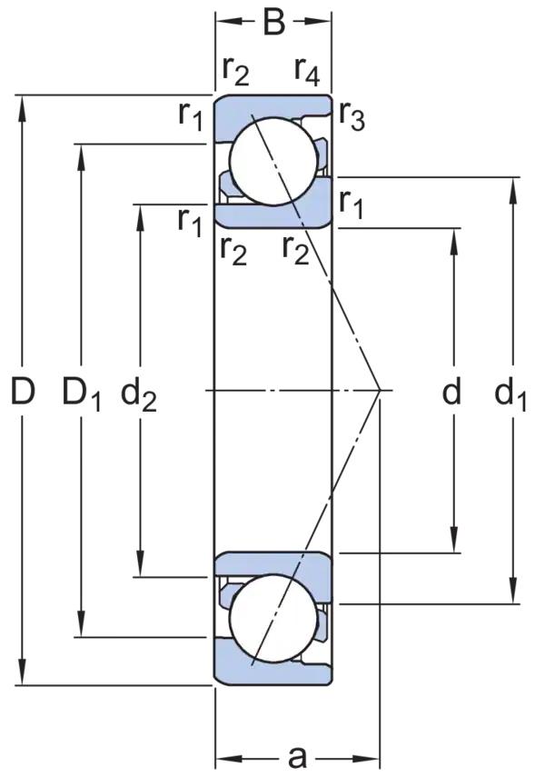 Эти однорядные радиально-упорные шарикоподшипники с углом контакта 25° могут воспринимать действующие одновременно радиальную и осевую нагрузки, когда осевая нагрузка действует только в одном направлении. Они изготавливаются с нормальным осевым внутренним зазором и подходят для универсального монтажа, когда два подшипника могут устанавливаться по Х-образной или О-образной схеме. Они оснащаются центрируемым по шарикам латунным сепаратором. Их допустимая частота вращения может на 20% превышать частоту вращения аналогичных подшипников с углом контакта 40°.
