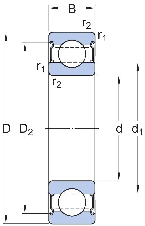Высокотемпературный радиальный шарикоподшипник с защитными шайбами с обеих сторон