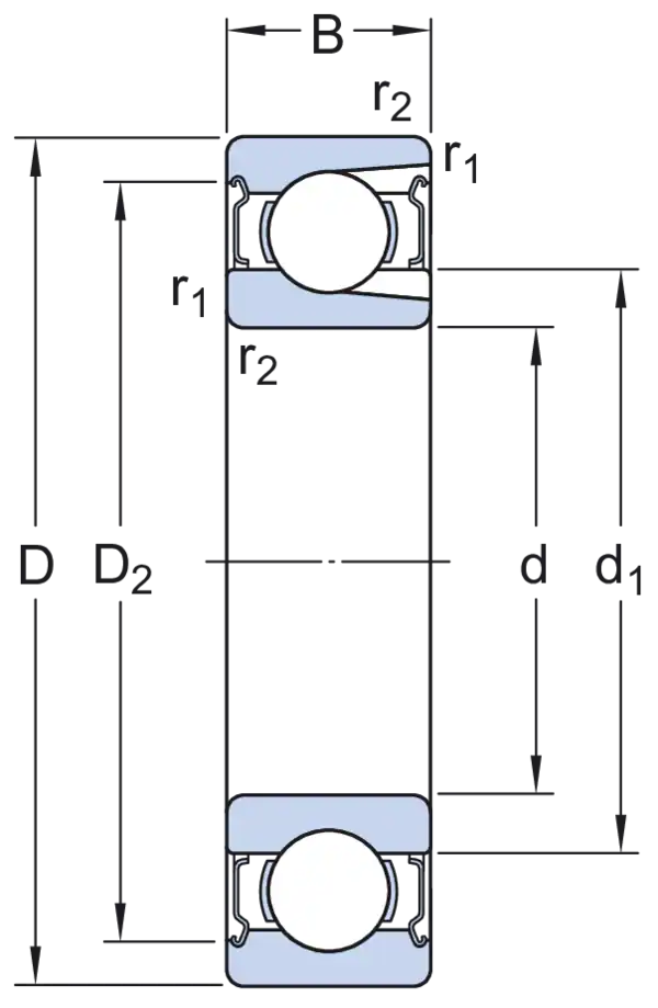 Однорядные радиальные шарикоподшипники с пазами для ввода шариков и защитными шайбами с обеих сторон вмещают большее количество шариков по сравнению с обычными радиальными шарикоподшипниками. Они имеют простую, но универсальную конструкцию, надежны в эксплуатации и просты в техобслуживании. Они способны работать под действием радиальных и осевых нагрузок в обоих направлениях. У них более высокая радиальная грузоподъёмность, чем у соответствующих подшипников без таких пазов, однако пазы ограничивают их способность воспринимать осевые нагрузки. Встроенные уплотнения могут значительно увеличить срок службы подшипника, удерживая смазочный материал внутри и не допуская попадания в него загрязняющих веществ из окружающей среды.