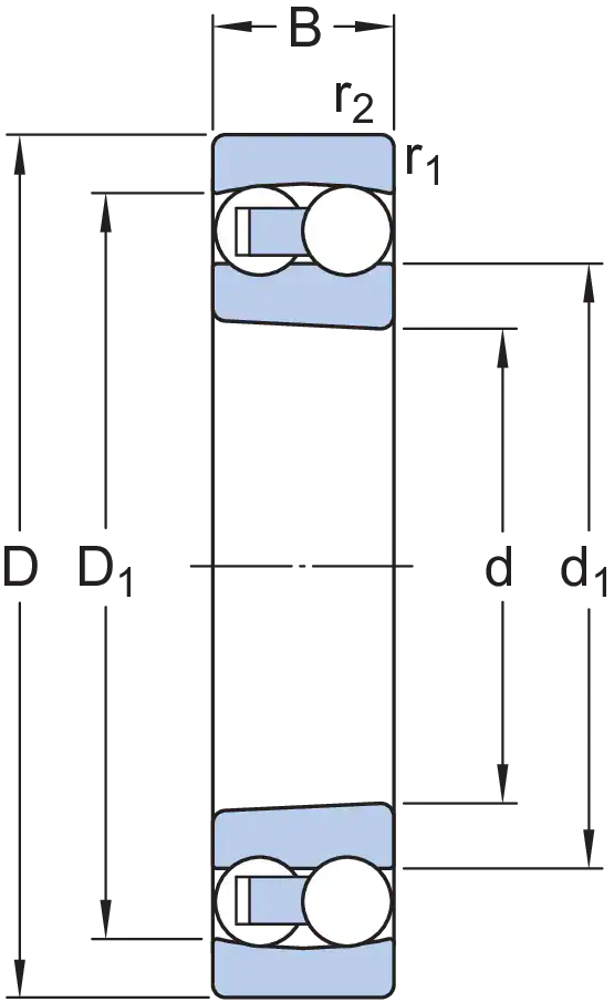 Самоустанавливающиеся шарикоподшипники с коническим отверстием имеют два ряда шариков, общую сферическую дорожку качения на наружном кольце, а также две дорожки качения на внутреннем кольце. Нечувствительны к угловым перекосам вала относительно корпуса, которые могут возникать, например, по причине деформации вала. Коническое отверстие упрощает монтаж благодаря закрепительным или стяжным втулкам.