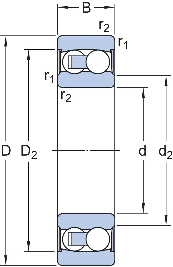 Самоустанавливающиеся шарикоподшипники с уплотнениями с обеих сторон имеют два ряда шариков, общую сферическую дорожку качения на наружном кольце, а также две дорожки качения на внутреннем кольце. Нечувствительны к угловым перекосам вала относительно корпуса. Встроенные уплотнения могут значительно увеличить срок службы подшипника, удерживая смазочный материал внутри и не допуская попадания в него загрязняющих веществ из окружающей среды.