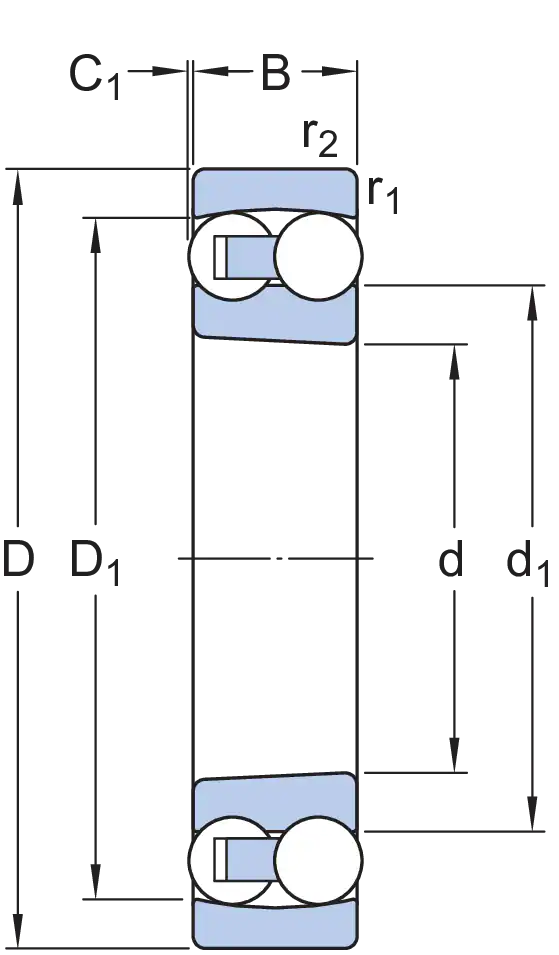 Самоустанавливающиеся шарикоподшипники с коническим отверстием имеют два ряда шариков, общую сферическую дорожку качения на наружном кольце, а также две дорожки качения на внутреннем кольце. Нечувствительны к угловым перекосам вала относительно корпуса, которые могут возникать, например, по причине деформации вала. Коническое отверстие упрощает монтаж благодаря закрепительным или стяжным втулкам.