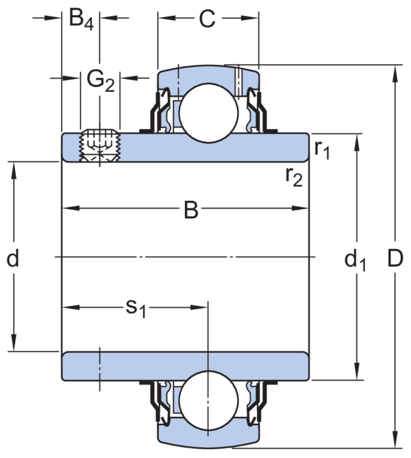Корпусные подшипники сконструированы на основе уплотнённых радиальных шарикоподшипников. Такой вариант применяется в условиях постоянного и переменного направления вращения. Внутреннее кольцо расширено с обеих сторон, а его фиксация на валу осуществляется путем затягивания двух (установочных) винтов на внутреннем кольце, что упрощает монтаж.